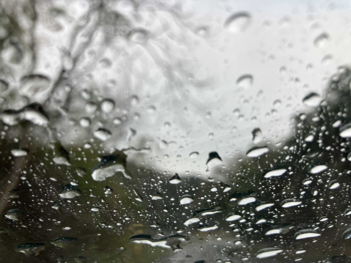 De foto toont regen op een autoruit, Takebe, Okayama, 7 april 2026.